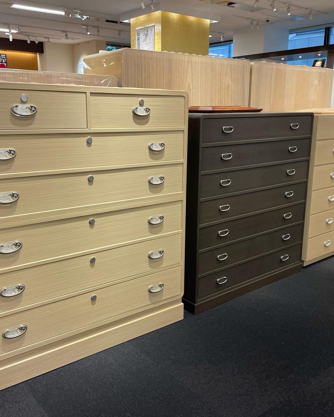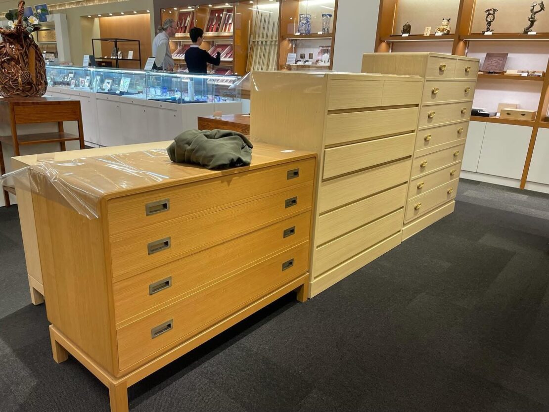 ●伝統的な桐たんすやモダン桐家具、桐小物なども多数展示販売しております。